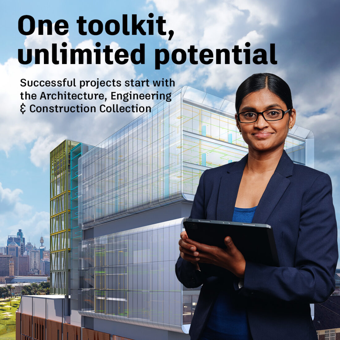 The Autodesk AEC Collection provides designers, engineers, and contractors a set of BIM and CAD tools supported by a cloud-based common data environment that facilitates project delivery from early-stage design through to construction.
